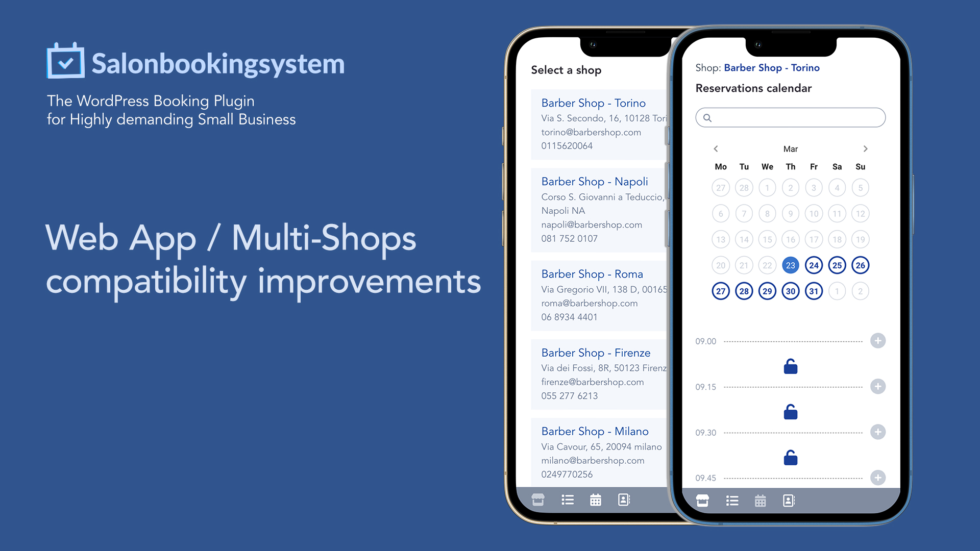 In the last release of Salon Booking System 8.4 and Multi-Shops 4.9.7 we’ve made some improvements to make the web app much more usable and compatible with the Multi-Shops add-on.