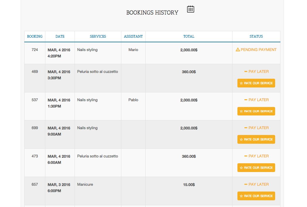 Your customers can also control their past reservations and eventually submit a review for each of them to the Salon’s manager.