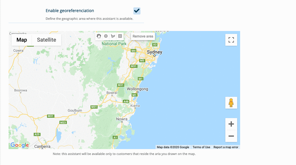 On the back-end inside the assistant settings page you’ll see a new field where your can drag on a map the area where this assistant will operate.
