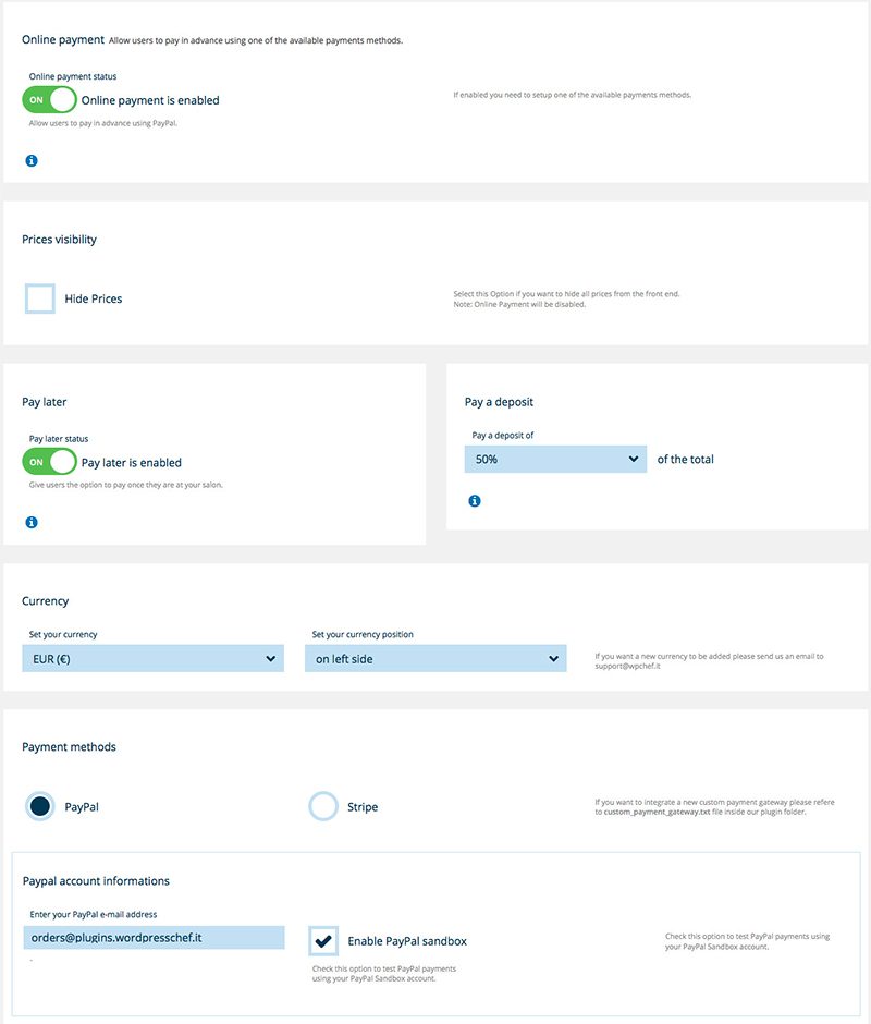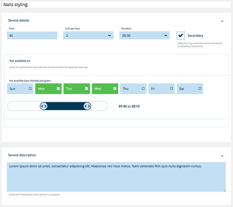 Click on thumbnails to see the backend options and features of Salon Booking.