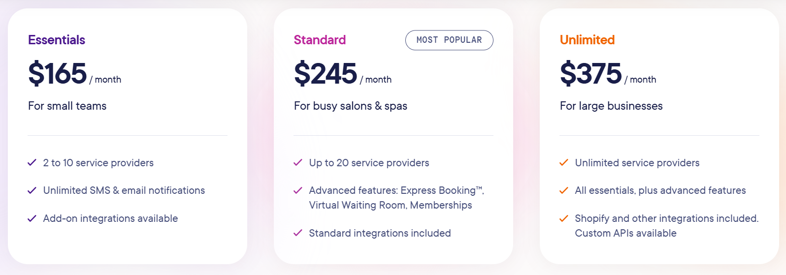| Mangomint | Teams prioritizing modern UX | $165/month | Automation-first with Express Booking™ |